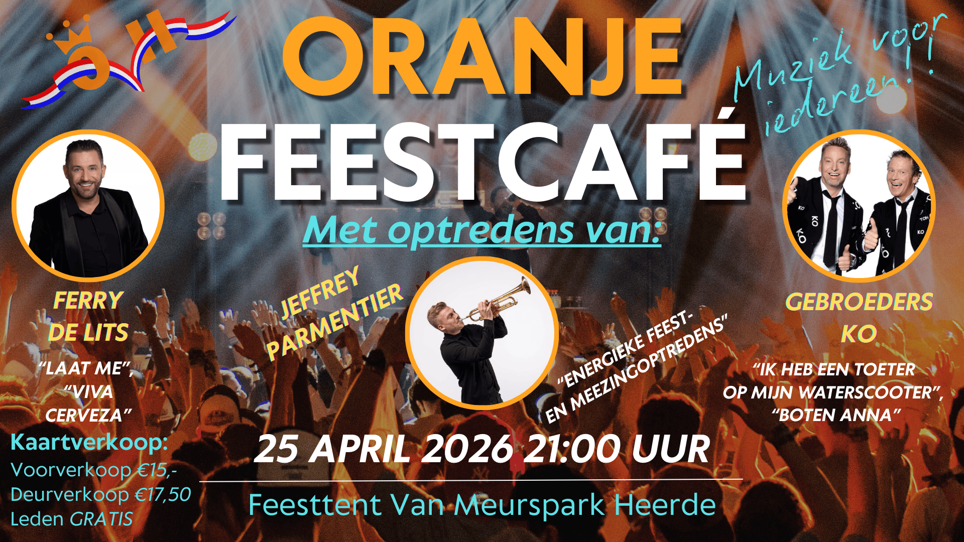👑 Leden van Oranjevereniging Heerde hebben gratis toegang.