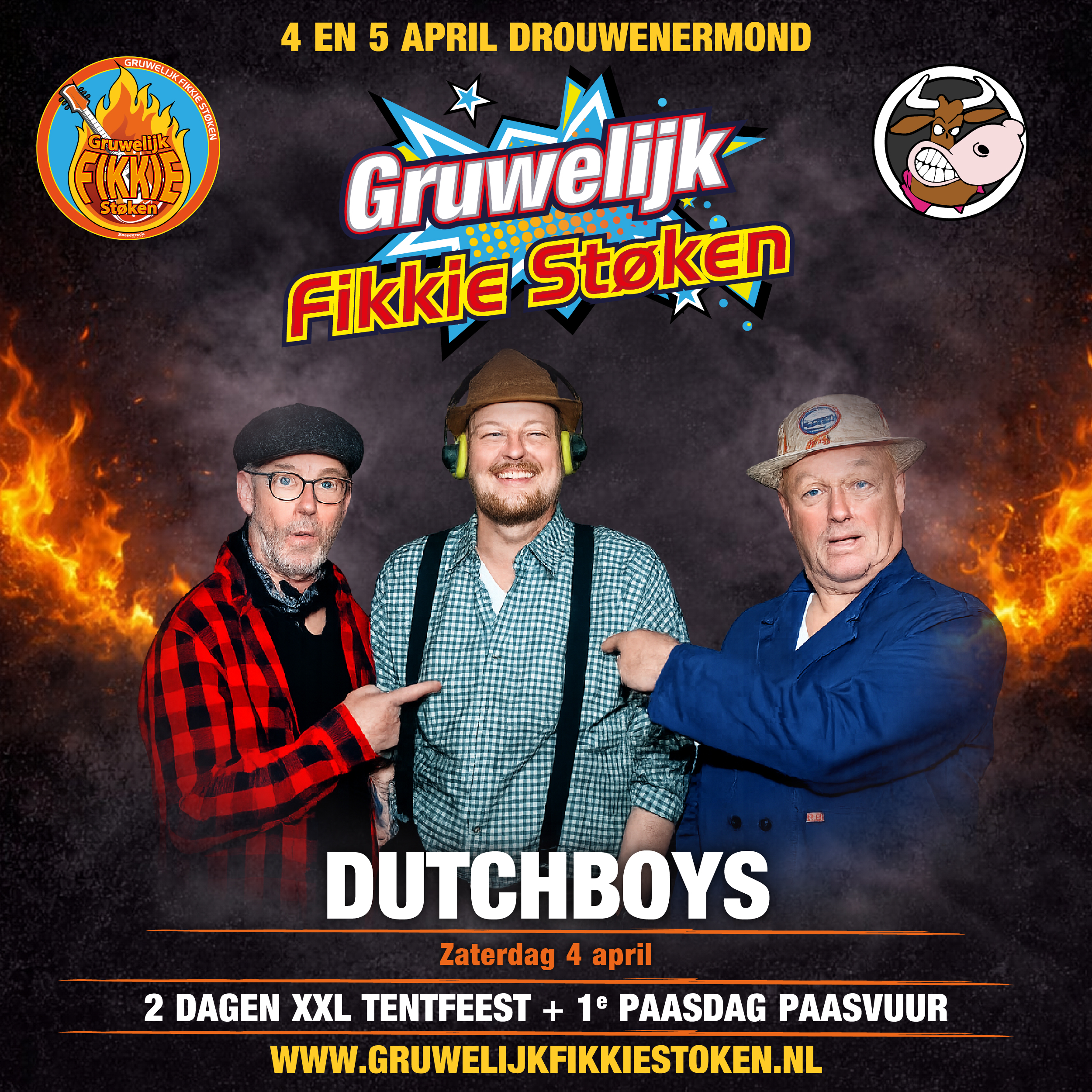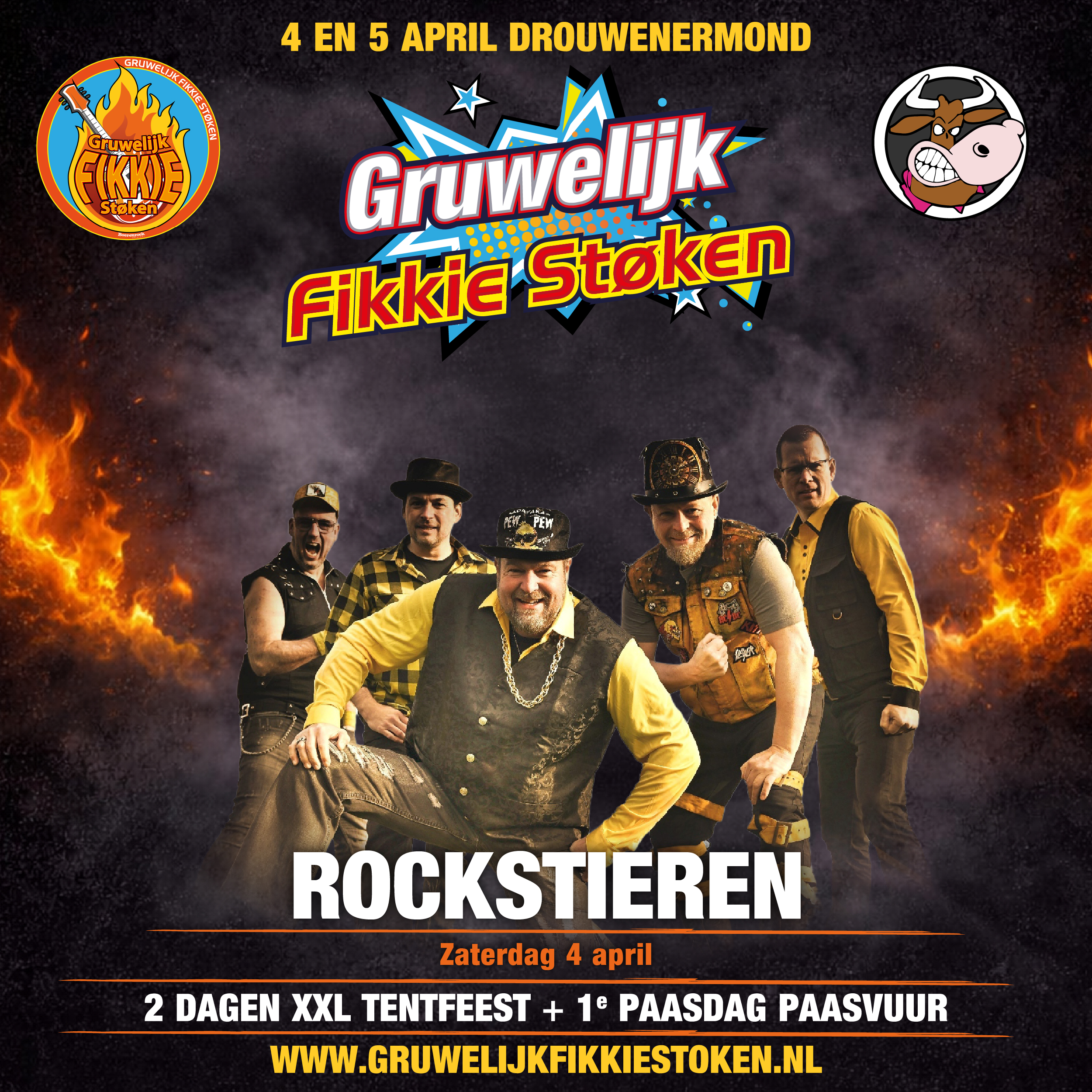 Op Eerste Paasdag wordt het evenement afgesloten met het traditionele paasvuur, een eeuwenoude traditie die in Drouwenermond nog altijd groots wordt gevierd. De combinatie van feest, muziek en traditie maakt Gruwelijk Fikkie Støken tot een unieke belevenis op het Drentse platteland.
